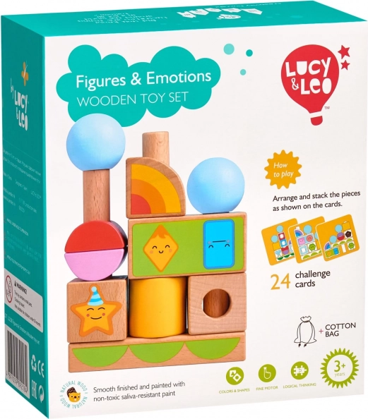 Otkrijte kreativnu drvenu slagalicu LUCY & LEO koja djecu uči prepoznavati oblike, boje i emocije. Zahvaljujući 24 predlošcima, šarenim drvenim dijelovima i ploči s klinovima djeca vježbaju logičko razmišljanje, finu motoriku i strpljenje. Praktična lanena vrećica olakšava spremanje i prenošenje.