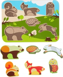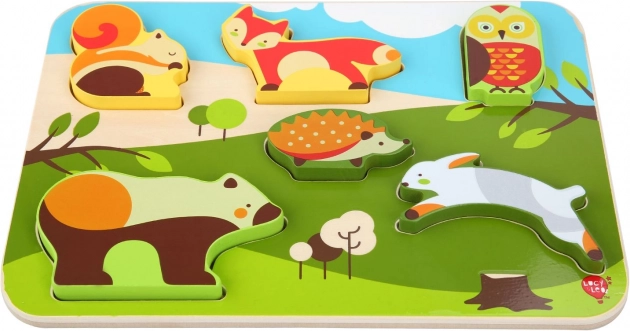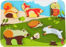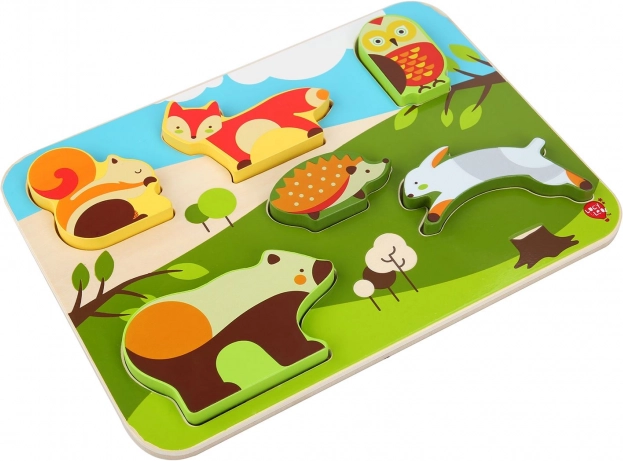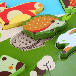 Glatka i čvrsta ploča s ilustracijama šume pomaže djeci pri pravilnom sparivanju, dok veliki i pregledni oblici potiču koordinaciju oko–ruka i prostornu orijentaciju. Jednostavan raspored motiva održava pažnju i gradi samopouzdanje pri uspješnom slaganju.