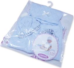 Odjeća za lutku bebu veličine 26 cm uključuje džemperić, kapicu i gaćice. Dizajnirana je tako da unese maksimalnu udobnost i eleganciju u igru s lutkom. Pakiranje također sadrži nježno pletenu dekicu koja upotpunjuje cjelokupan izgled. Set je pakiran u prozirnu ambalažu s plastičnom ili kartonskom vješalicom.