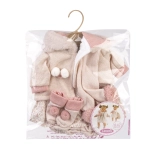 Stilizan 5-dijelni komplet za lutku veličine 42 cm donosi sve za savršeno presvlačenje. U njemu ćete pronaći mekani pleteni džemperić s kapuljačom, cvjetni kombinezon/haljinicu, čarapice i rukavice te pahuljast šal s pomponima i gumice za kosu. Kvalitetna izrada, proizvedeno u Španjolskoj, idealno za kreativnu igru i razvoj fine motorike.