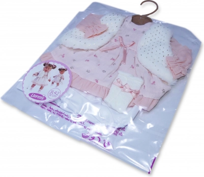 Stilski 4-dijelni komplet odjeće za lutku 42 cm marke LLORENS oduševit će nježnom ružičastom haljinicom, mekanim prslukom i gaćicama te vješalicom. Proizvedeno u Španjolskoj, idealno za svakodnevnu igru i svečane trenutke. Prikladno od 3 godine.