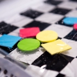 Otkrijte kontrastnu vodenu podlogu, koja ne samo da će privući pažnju vašeg djeteta, već također podržava njegov osjetilni i motorički razvoj. Ova podloga s crno-bijelim šahovskim motivom sadrži plutajuće šarene geometrijske oblike koji se pomiču na dodir djeteta.