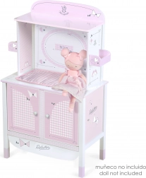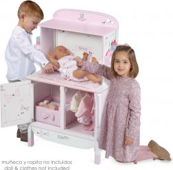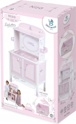 Zahvaljujući preciznom španjolskom dizajnu i pažljivo odabranim materijalima, ormar djeluje lagano i čisto. Praktične dimenzije osiguravaju stabilnost i dovoljno mjesta za sve potrepštine za brigu o lutki do duljine 45 cm.
