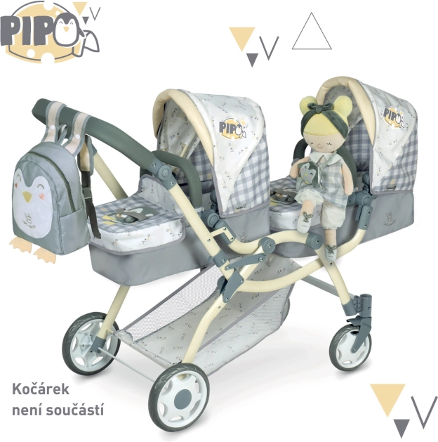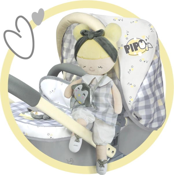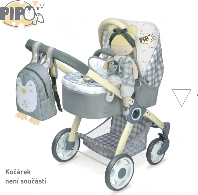 Lutka Pipo je dio prekrasne kolekcije iz 2022. koju ćete obožavati. Ova kolekcija uključuje kolica, namještaj za lutke i druge dodatke za male domaćice. Karakterističan dizajn sa sivobijelom kockom i nježno žutim dodacima s motivom pingvina ispunjava očekivanja svake male princeze.