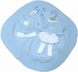 Set sadrži majicu, kapicu, čarape i dekicu, koji u kombinaciji čine savršen izgled vaše lutke.