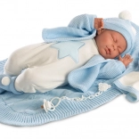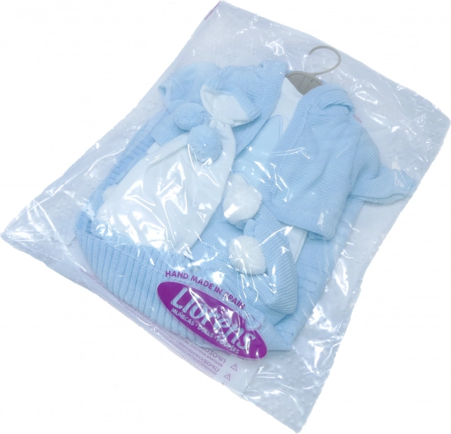 Ova prekrasna 4-dijelna garnitura uključuje španjolsku preciznost i kvalitetu koju nudi marka Llorens. Pogodna za lutke veličine 40-42 cm, dolazi s ukrasnim pokrivačem i mekom maramicom s pomponima. Odjeća je izvrstan dodatak za vaše lutke koje će izgledati stilski i moderno.