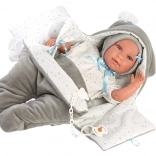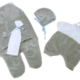 Dvodijelna odjeća za lutku bebu uključujući brzu povoj-dekicu za autosjedalicu i ukrasnu maramicu. Idealan izbor za lutke veličine 40-42 cm.