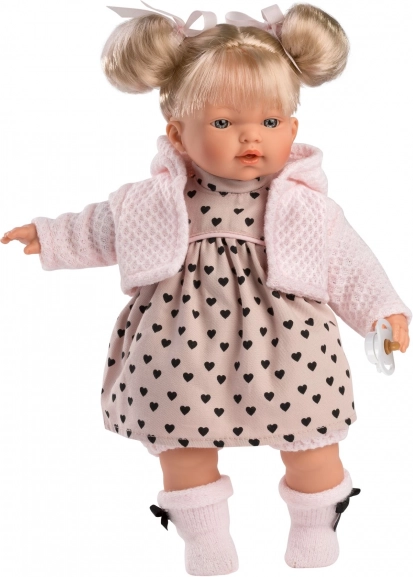Lutka Llorens Roberta veličine 33 cm idealan je pratitelj za igru i razvoj dječje mašte. Nakon vađenja magnetne dude počinje izgovarati „mama“, „tata“ i ispušta realističan zvuk plača, koji se lako umiri ponovnim stavljanjem dude. Mekano platneno tijelce pogodno je za maženje, dok glava i udovi od omekšanog vinila djeluju prirodno i ugodni su na dodir.