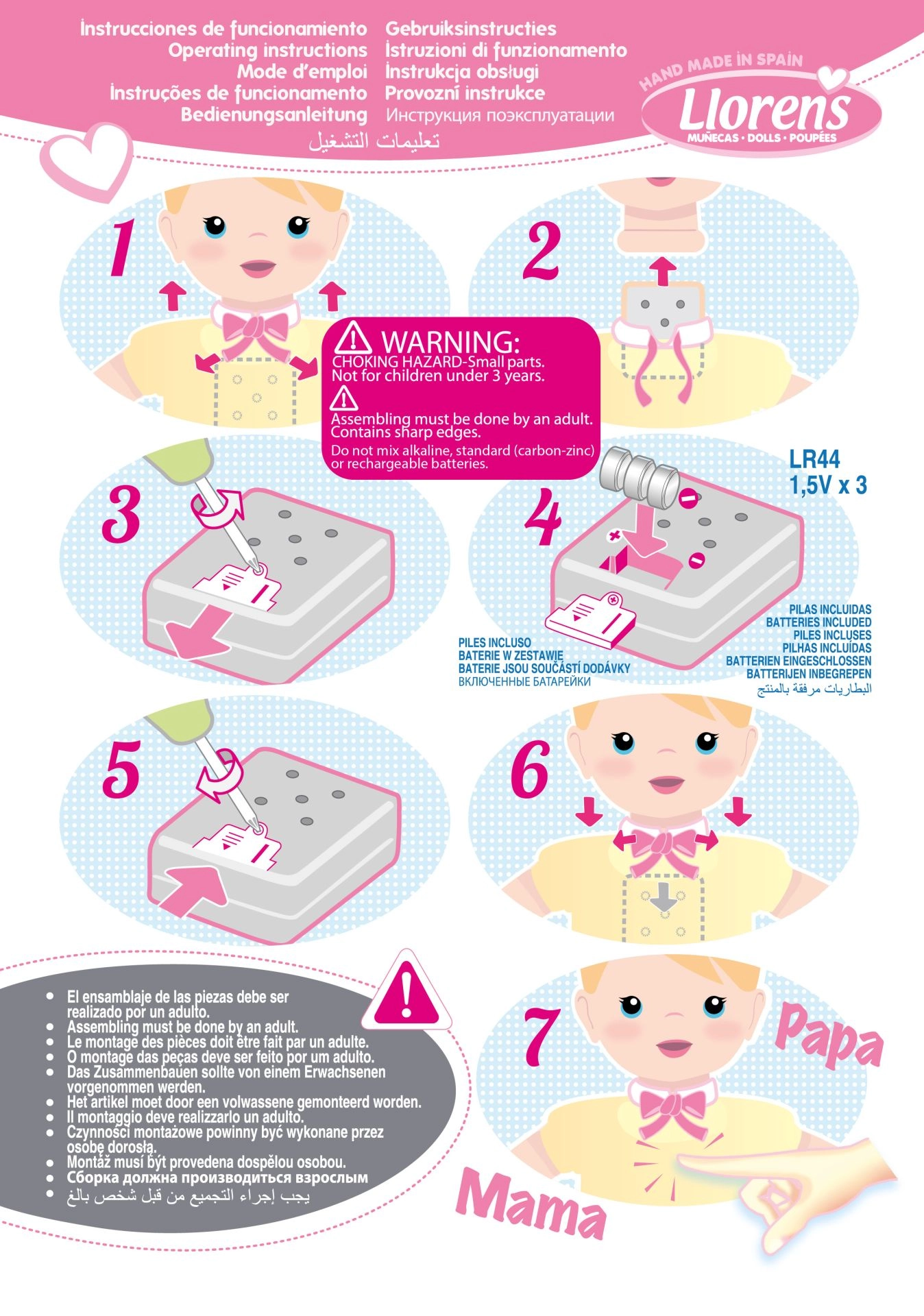 Pri pritisku na prsima lutka govori „mama“, „papa“ i ispušta realistične zvukove plača – igra je time još življa.