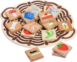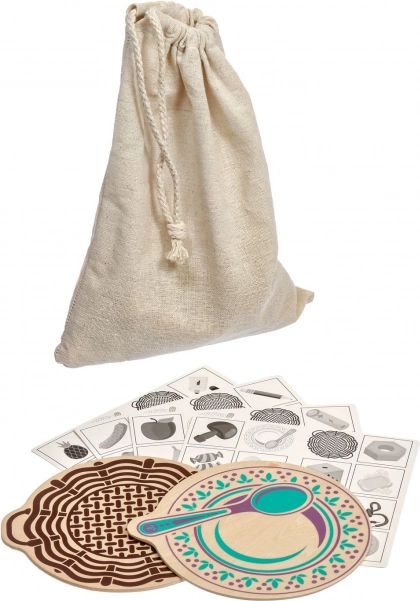 Ovo promišljeno montessori pomagalo uči djecu razlikovati što je prikladno jesti, a što nije. Na drvenim podlogama prikazani su tanjur sa žlicom i pletena košarica, na koje djeca slažu pločice sa slikama voća, povrća, slatkiša ili napitaka, ali i ključeva, žarulja, igala ili olovaka. Igra prirodno potiče upoznavanje svijeta, koncentraciju i komunikacijske vještine.