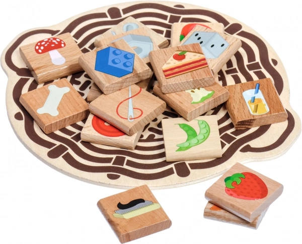 U pakiranju se nalaze i 4 crno-bijela predloška za brze igre opažanja i vježbu razvrstavanja. Pločice se nakon igre mogu spremiti u zatvarajuću lanenu vrećicu, pa se ništa ne izgubi. Drveni elementi imaju glatke rubove i jasne, razumljive ilustracije za lako prepoznavanje, uključujući i zagonetke poput gljiva – neke jestive, druge nejestive.