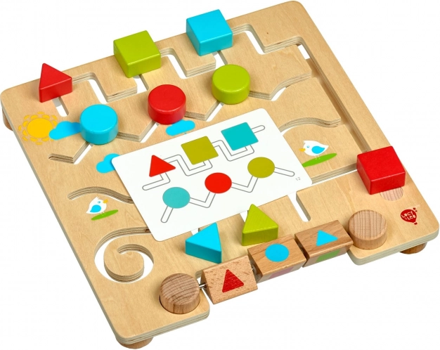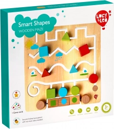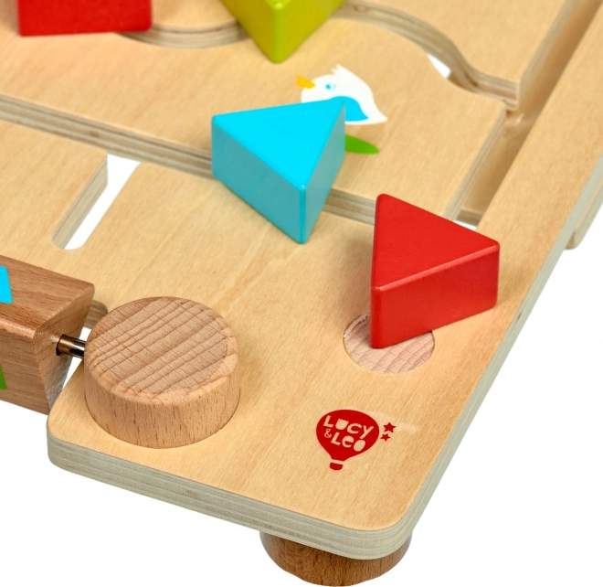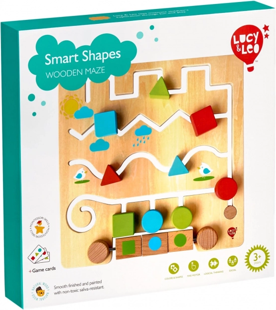 Drveni labirint s geometrijskim oblicima LUCY & LEO zabavna je i edukativna igračka koja djeci pomaže učiti oblike i boje na prirodan način. Glatka igraća ploča s vijugavim stazama vodi šarene dijelove tako da odgovaraju oblicima na rotirajućim blokovima ili zadanim uzorcima na karticama. Zahvaljujući robusnom drvu i sigurnoj izradi igračka je prikladna za svakodnevnu igru.