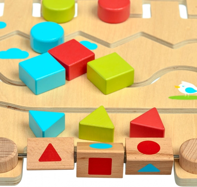 Pametni drveni labirint s geometrijskim oblicima od LUCY & LEO razvija logičko razmišljanje, finu motoriku i vizualnu percepciju. Djeca pomiču šarene oblike po stazama te prema predlošcima ili okretanjem blokova slažu ispravne kombinacije. Čvrsta drvena konstrukcija, žive boje i kompaktne dimenzije čine ga idealnom igračkom i za putovanja.