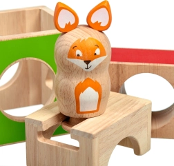 Igra postupno razvija finu motoriku, koordinaciju oko–ruka i rječnik – osobito razumijevanje prijedloga i priloga (npr. u, na, ispred, iza). Zahvaljujući čvrstom drvu s glatkom obradom i netoksičnim bojama, igra je sigurna i ugodna.