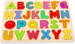 Ova drvena slagalica s velikim slovima pomaže djeci kroz igru savladati abecedu, razvija koordinaciju ruka–oko i trenira strpljenje. Robusna ploča debljine 1,2 cm osigurava stabilnost i dug vijek trajanja, pojedini dijelovi lako se umeću i vade.