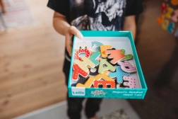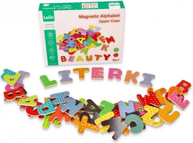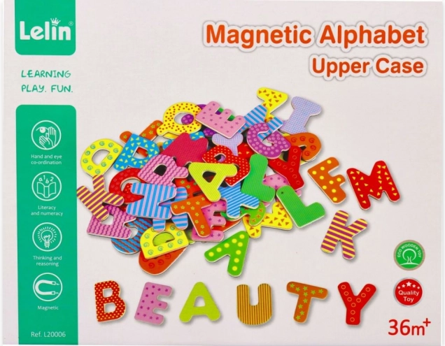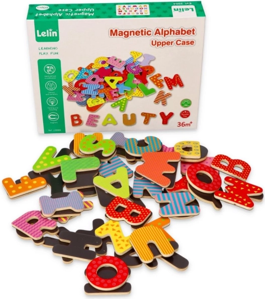 Ovaj set magnetnih drvenih slovki potiče prirodno učenje kroz igru. Zahvaljujući magnetnoj poleđini, drže se na hladnjaku, magnetskoj ploči ili metalnim površinama, pa se djeca mogu lako učiti abecedu, slaganje slogova i prvih riječi.