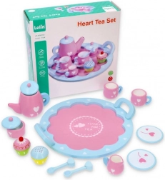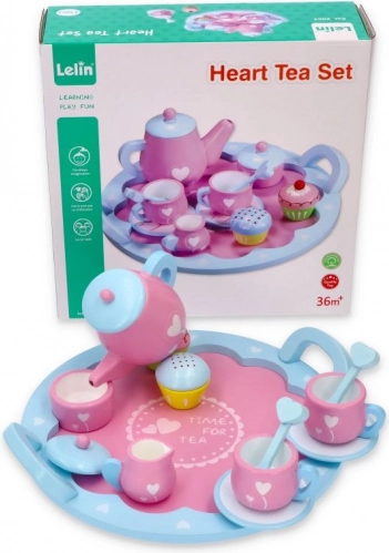 Ova kvalitetna drvena čajna garnitura s motivom srca idealna je za male domaćine i domaćice. Zahvaljujući čvrstoj izradi i ugodnim bojama savršena je za svakodnevnu igru, razvoj komunikacijskih vještina i vježbanje koordinacije ruka–oko.