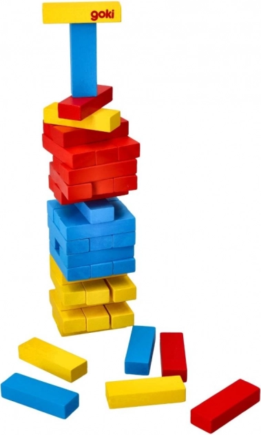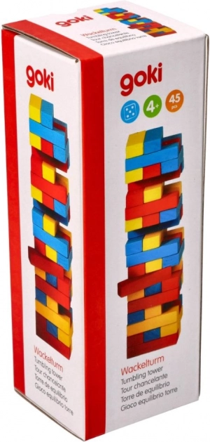 Ova klasična balansirajuća igra od kvalitetnog drva brenda GOKI nudi jednostavna pravila, a maksimalnu zabavu. Svaki kat čine tri obojena dijela, a zadatak igrača je pažljivo izvlačiti kocke iz nižih katova i stavljati ih na vrh. Toranj mora ostati uspravan – pobjeđuje onaj tko najdulje održi ravnotežu.