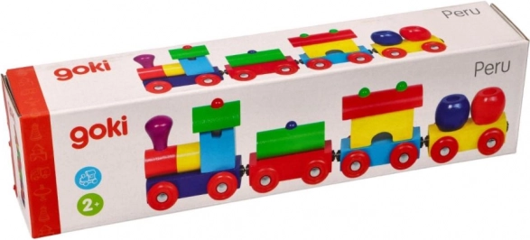 Ovaj šareni drveni vlakić marke Goki osmišljen je kako bi djeci omogućio istraživanje svijeta boja i oblika. Vlakić ne samo da razvija motoričke vještine nego također uči osnovne boje i oblike.