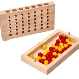 - Igrači odaberu boju i naizmjenično ubacuju kuglice u otvore na ploči za igru.