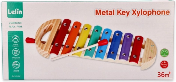 Ksilofon sadrži osam metalnih tipki u jarkim bojama koje djeci omogućuju eksperimentiranje s različitim tonovima i melodijama.