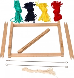 Ovaj čvrst tkalački stan od bukova drva izvrstan je uvod u svijet tkanja. Zahvaljujući jednostavnoj konstrukciji i priloženim uputama, djeca od 6 godina lako savladavaju osnovne tehnike, stvaraju uzorke i kombiniraju crvenu, žutu, zelenu i plavu pređu.