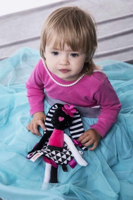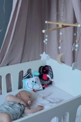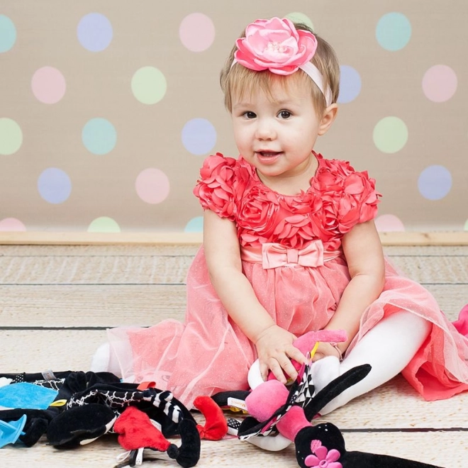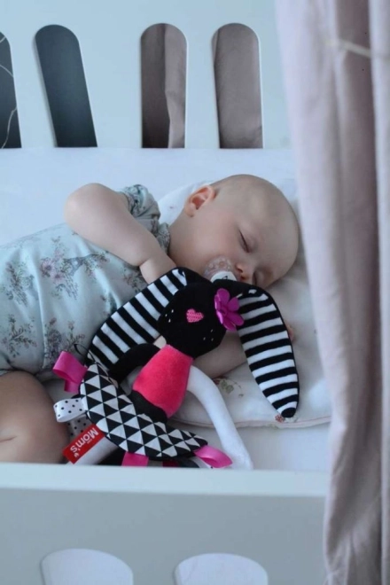 Preslatki senzorički plišani zeko idealan je prvi prijatelj za novorođenče. Kombinira kontrastne crno-bijele uzorke, različite teksture i šumeće elemente za svestranu stimulaciju vida, sluha i dodira. Mek, siguran od 0+ i izrađen od certificiranih materijala nježnih prema dječjoj koži.