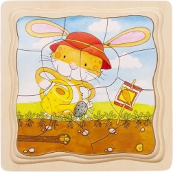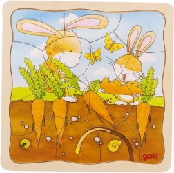 Otkrijte kako raste mrkva uz prekrasne drvene slojevite puzzle od GOKI. Četiri uzastopne slike s različitim brojem dijelova uče djecu osnovama prirodoslovlja, razvijaju finu motoriku, logičko razmišljanje i koordinacijske vještine. Zahvaljujući čvrstom drvenom okviru slaganje je jednostavno, a proizvod je idealan za djecu od 3 godine naviše.