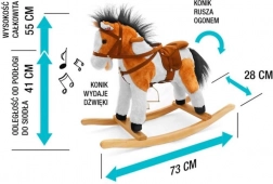Ovaj čarobni konjić za ljuljanje izrađen je od mekog i kvalitetnog pliša, što osigurava ugodan dodir. Sjajna značajka su drvene letvice za ljuljanje i solidne drvene ručke koje osiguravaju stabilnost i sigurnost tijekom igre. Konjić je opremljen sedlom sa stremenima i uzdom, što dodatno približava autentičnost jahanja.