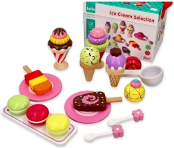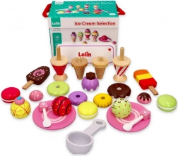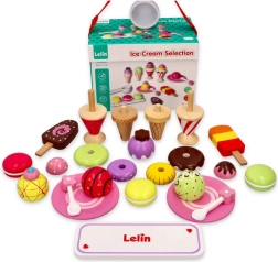 S elegantnim drvenim setom sladoleda marke Lelin svako dijete postaje sladoledar. Ovaj set sadrži 25 šarenih dijelova i idealan je za djecu stariju od 3 godine. Igračke su izrađene od lakiranog drva i pakirane su u čvrstoj kutiji s ugodnim poklopcem i ručkom za jednostavno prenošenje.