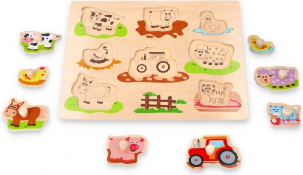 Otkrijte čaroliju farme s ovom drvenom slagalicom. Djeca će biti oduševljena otkrivanjem likova i prizora s farme, koji im približavaju život na selu. Posebne ručke olakšavaju rukovanje pojedinačnim dijelovima, zbog čega je igračka prikladna i za najmlađe.