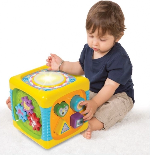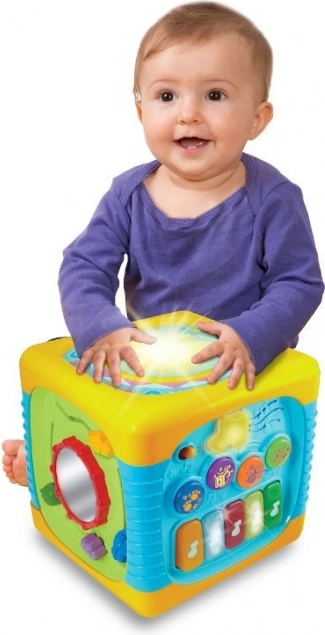 Svaka stranica kocke pruža vašem mališanu mnogo atrakcija i iznenađenja koja će dugo zadržati njegovu pažnju. Igračka stimulira sva djetetova osjetila i potiče njegov razvoj. Jarke, živopisne boje, ugodni diskretni zvukovi te svjetlosni efekti potiču dijete na igru. Ova kocka je središte sjajne zabave na dugo vremena.