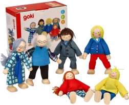 Set je kompatibilan sa svim kućicama za lutke marke GOKI. Prirodni materijali, pažljiv odabir drva i sigurne boje naglašavaju dug vijek trajanja i vrijednosti održivosti. Visina lutkica 9–11 cm odgovara manjim dječjim rukama i olakšava rukovanje.