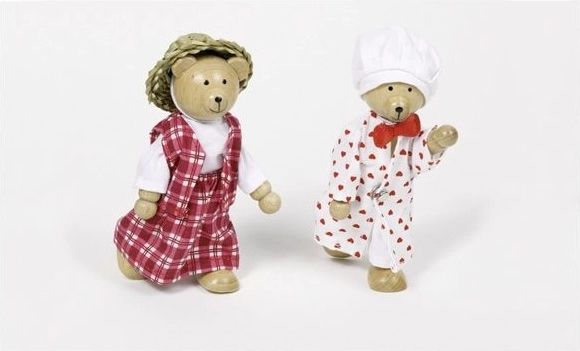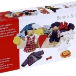 - 2 medvjedića za oblačenje, set odjeće u drvenoj kutiji