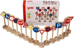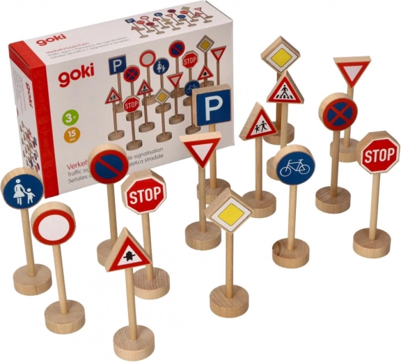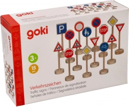 Otkrijte zabavan i edukativan set drvenih prometnih znakova Goki, koji djeci pomaže na razigran način usvojiti pravila cestovnog prometa. Čvrsti znakovi od masivnog drva s nezapaljivim bojama idealni su za igru s autićima i na autodromu. Lako se drže, visoki su 11 cm, a u pakiranju se nalazi 15 komada za realistične prometne situacije.