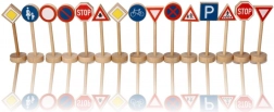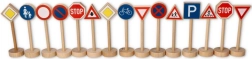 Sadrži raznolik izbor znakova poput Stop, Pješački prijelaz i Parkiralište. Visina svakog znaka je 11 cm za lako držanje.