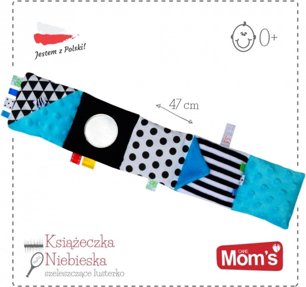Ova mekana tekstilna knjižica posebno je dizajnirana za novorođenčad i dojenčad. Kontrastni uzorci privlače pažnju djeteta i podupiru razvoj vida, dok raznolike teksture i šumeći elementi potiču taktilnu percepciju i znatiželjne prstiće. Integrirano sigurno zrcalo pomaže djetetu otkrivati vlastiti odraz i učiti samospoznaju.