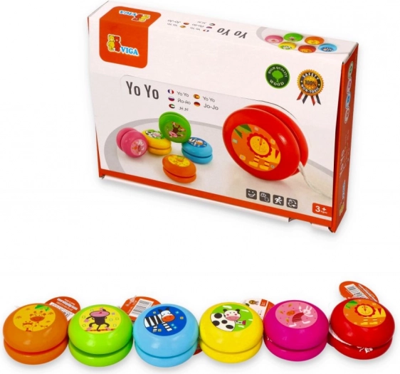 Klasično drveno jo-jo u živim bojama donosi djeci sate zabave te istodobno razvija koordinacijske sposobnosti, koncentraciju i reflekse. Zahvaljujući kompaktnoj veličini dijete ga lako spremi u džep i može se igrati bilo gdje i bilo kada. Na izbor su slatki životinjski motivi – kravica, žirafe, zečić, lav, majmunčić i zebra. Cijena je za 1 komad, boja/motiv šalje se nasumično.