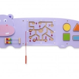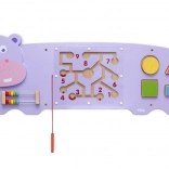 Velika drvena ploča u obliku nilskog konja nudi nekoliko aktivnosti za pametnu igru i učenje. Razvija finu motoriku, logičko razmišljanje i prepoznavanje brojeva, boja i oblika. Zahvaljujući magnetskom labirintu, abaku i sorteru oblika idealna je za kućnu upotrebu i vrtiće. Izrađena od lakiranog drva s sigurnim bojama, certifikat FSC.