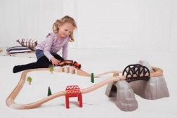 Ova drvena vlakna seta s visokogorskom prugom idealna je za male avanturiste. Sadrži 12 dijelova i omogućuje kombinaciju s drugim željezničkim setovima, što podržava njihovu maštovitost i koordinaciju tijekom igre.