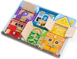 Vizualno raznolika ploča koristi ilustracije sa životinjama i brojevima, koji uče djecu osnovama brojanja i prepoznavanja oblika.