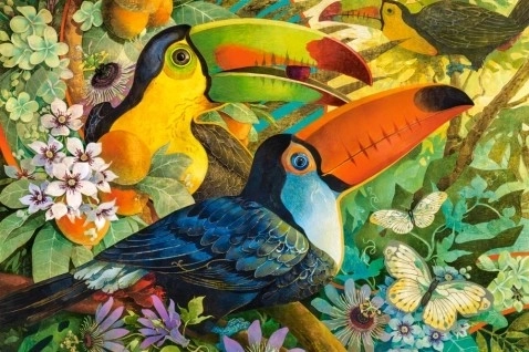 Elegantna slagalica s prirodnim motivom „Interlude” donosi živopisne boje tropske šume i izražene siluete tukana. Zahvaljujući 3000 precizno izrezanih dijelova riječ je o izazovu koji će oduševiti zahtjevne ljubitelje puzzli i ambiciozne početnike.