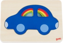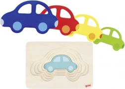 Otkrijte zabavnu i edukativnu igračku za najmlađe: višeslojnu drvenu slagalicu u obliku automobila brenda GOKI. Djeca kroz igru vježbaju finu motoriku, prepoznavanje boja i razumijevanje veličina. Čvrsta podloga s rubom osigurava stabilno umetanje, a svaki autić točno pristaje u svoj sloj.