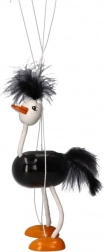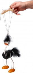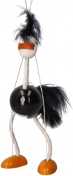 Marioneta ima crno tijelo, bijele noge i glavu s naglašenim narančastim stopalima. Blagi i mekani detalji na glavi i repu doprinose njenom razigranom izgledu. Djeca će obožavati kako se ovaj noj kreće i kako ga je lako upravljati.