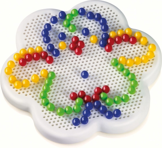Ergonomski oblikovana perforirana ploča u obliku cvijeta olakšava rukovanje i držanje, tako da djeca udobno slažu šarene motive.