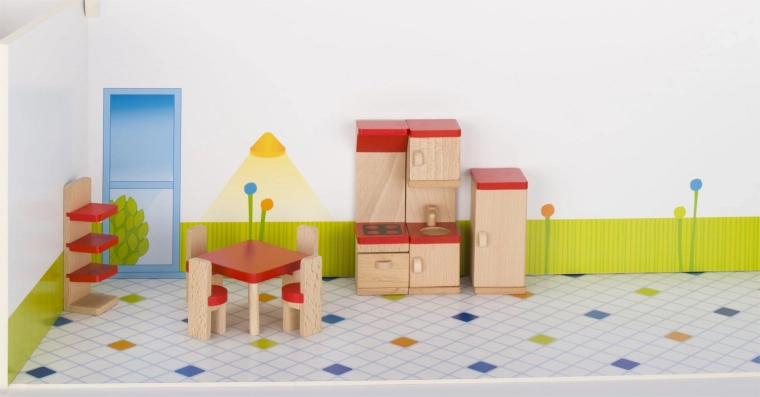 Ova kuhinjica za lutke marke GOKI donosi djeci realistično okruženje poznato iz doma. Bezvremenski izgled i kvalitetna izrada od masivnog drva jamče dug vijek trajanja i sigurnu uporabu. Set je kompatibilan sa svim kućicama za lutke GOKI.