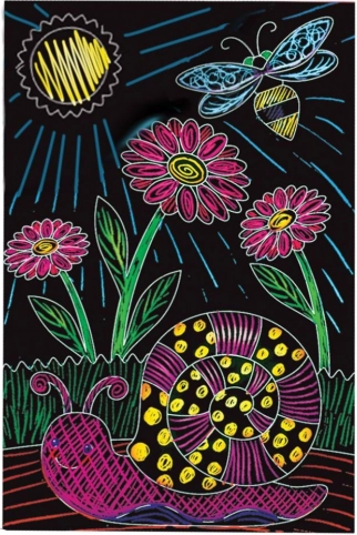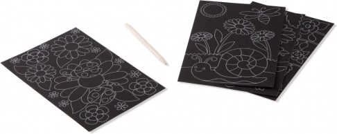 Otkrivanje kreativne zabave za djecu uz set strugalica s motivima leptirića i cvjetića. Dovoljno je lagano „strugati“ priloženim drvenim štapićem i ispod crnog sloja pojavljuju se šareni uzorci. Sjajna aktivnost za razvoj fine motorike, strpljenja i mašte. Gotove sličice dimenzija 14 × 21,5 cm lako je uokviriti i izložiti. Pogodno za djecu od 4 godine.