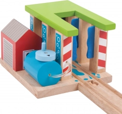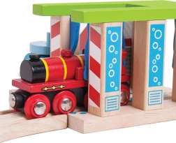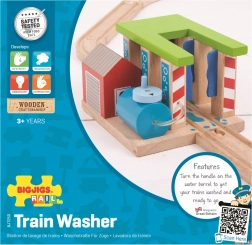 Ova drvena praonica vlakova BIGJIGS RAIL idealan je dodatak svakoj dječjoj željeznici. Zahvaljujući rotirajućim stupovima za pranje lako je mijenjati način prolaska i poticati kreativnu igru te razvoj fine motorike. Robusna izrada i živopisne boje privlače na prvi pogled i pozivaju na nove scenarije igre.