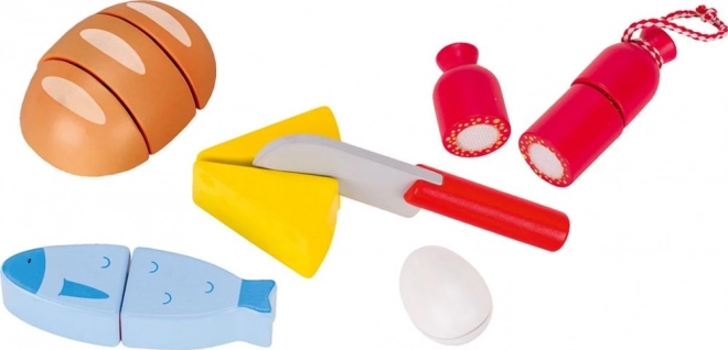 - Sadržaj seta: drveni nož + 5 rezivih delikatesa na čičak