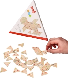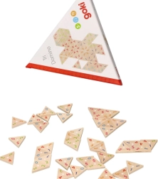 Tri-Domino od Goki je neobičan pristup klasičnoj igri, koji ima za cilj utrostručiti zabavu! Igrači imaju zadatak slagati trokutaste dijelove tako da formiraju veliki trokut s četiri ili pet puta duljom stranicom.
